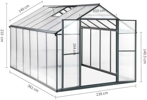 Gegaden aliuminio šiltnamis su 8 cm pagrindu, matmenys 228 x 361 x 210 cm. Pilka spalva, tinka dovanai. Šiltnamis sodui ar pomidorams. Šaltas rėmas augalams. Tvirtas ir erdvus. Lengvas surinkimas. Patvarus žiemą. Universalus daržovėms. Greitas montavimas. Ilgaamžė konstrukcija.