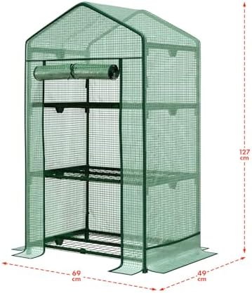 Aukštos kokybės dauginimo namelis su trimis lygiais, žalia spalva. Matmenys 49 x 69 x 127 cm, taupantis vietą. Stabilus ir lengvai surenkamas balkone ar sode. Kiekvienas lygis turi atskirą lentyną. Folija praleidžia šviesą bet blokuoja šaltį. Plieniniai strypai užtikrina tvirtumą. Greitas surinkimas be varžtų. Idealus daigams ir gėlėms. Patvari medžiaga atlaiko lietų.