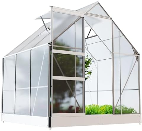 Premium aliuminio šiltnamis 190 x 190 cm su pagrindu. Stogo langas ir durys. Plotas 3,7 m². Žiemai atsparus, UV apsauga. Aliuminio profiliai 4 mm PC plokštės. Lietaus nutekėjimas. Ventiliacijos langai. Tvirta konstrukcija. Lengvas surinkimas 2024 modelis.